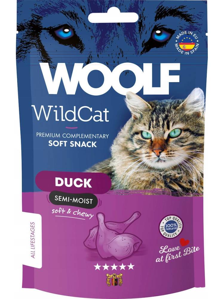 Ανακάλυψε τις λιχουδιές Woolf Wildcat για γάτες, που προσφέρουν μια γευστική εμπειρία με μαλακά σνακ από πάπια. Είναι ιδανικές για να ενθουσιάσουν τη γάτα σου και να προσφέρουν μια υγιεινή επιλογή ανάμεσα στα γεύματα. Το βάρος των σνακ είναι 50 γραμμάρια, οπότε είναι εύκολο να τις εντάξεις στη διατροφή της γάτας σου χωρίς να υπερβαίνεις τις μερίδες.