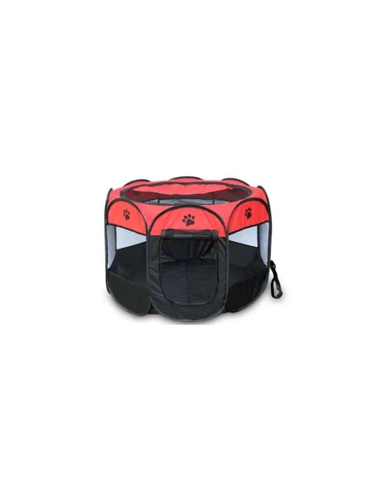 - Ένα πτυσσόμενο, υφασμάτινο παρκοκρέβατο σε οκταγωνικό σχέδιο για σκύλους, κουτάβια, γάτες και μικρά ζώα